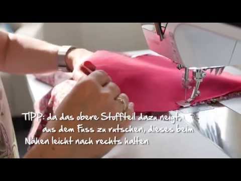 Der spezielle Fusseinschnitt am Kräuselfuss #16 ermöglicht es zudem, das gekräuselte Material direkt in einem Arbeitsgang an ein glattes Stück Stoff zu nähen.
