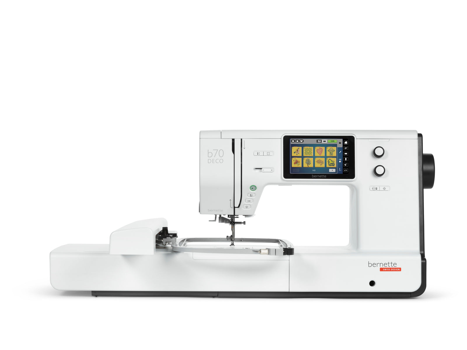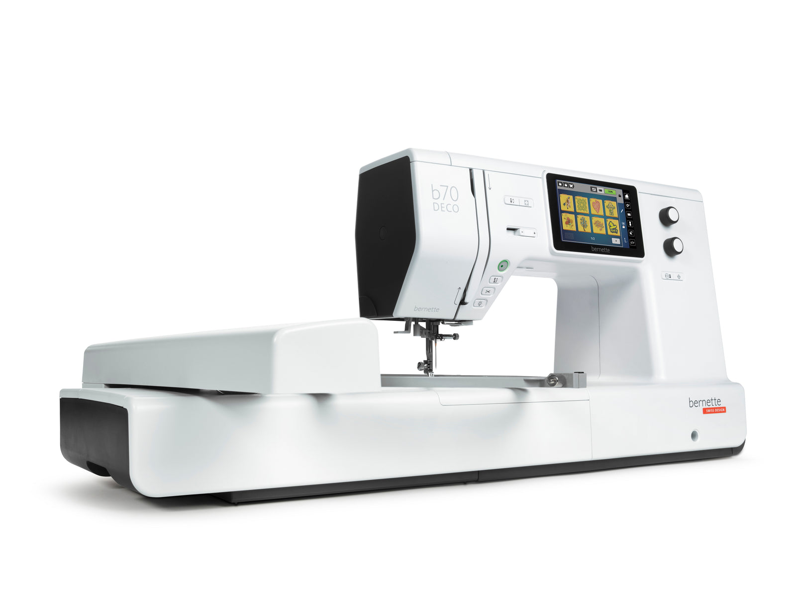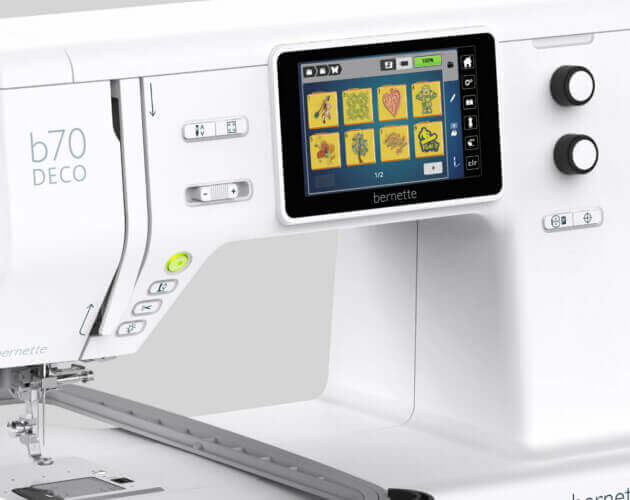 Entdecken Sie alle praktischen Details, die die bernette 70 DECO mit Stickmodul so einzigartig machen. Schritt für Schritt werden wir die Maschine vorstellen: