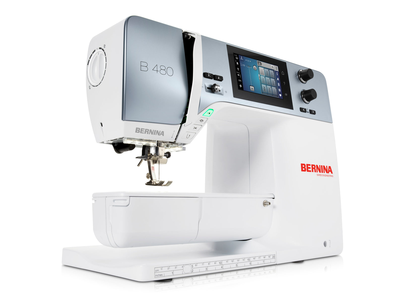 Entdecken Sie alle praktischen Details, die die BERNINA 480 so einzigartig machen. Schritt für Schritt werden wir die Maschine vorstellen:
